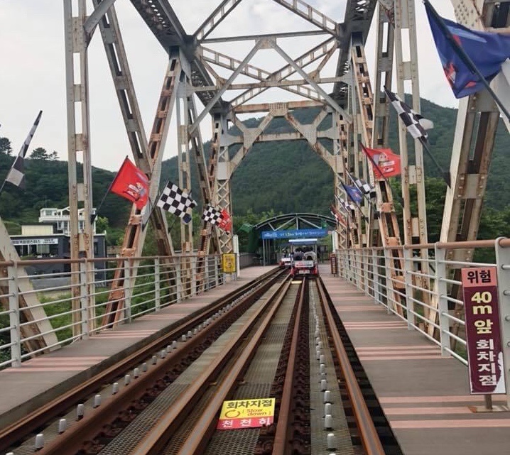 由廢棄鐵橋改建而成的金海洛東江鐵路自行車道,全長約大約3 公里,路程非常平緩。可以沿著江岸騎乘,享受微風吹拂、是能夠欣賞洛東江美麗景色的休閒運動,是一個能感受踩著鐵路自行車行經復古鐵橋的體驗活動。