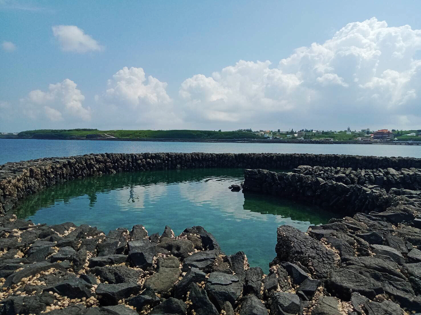 除了知名的雙心石滬外,在本島還有一個退潮限定的單心石滬,搭配清澈的海水及藍天白雲,是來到澎湖不能錯過的隱藏版美景。